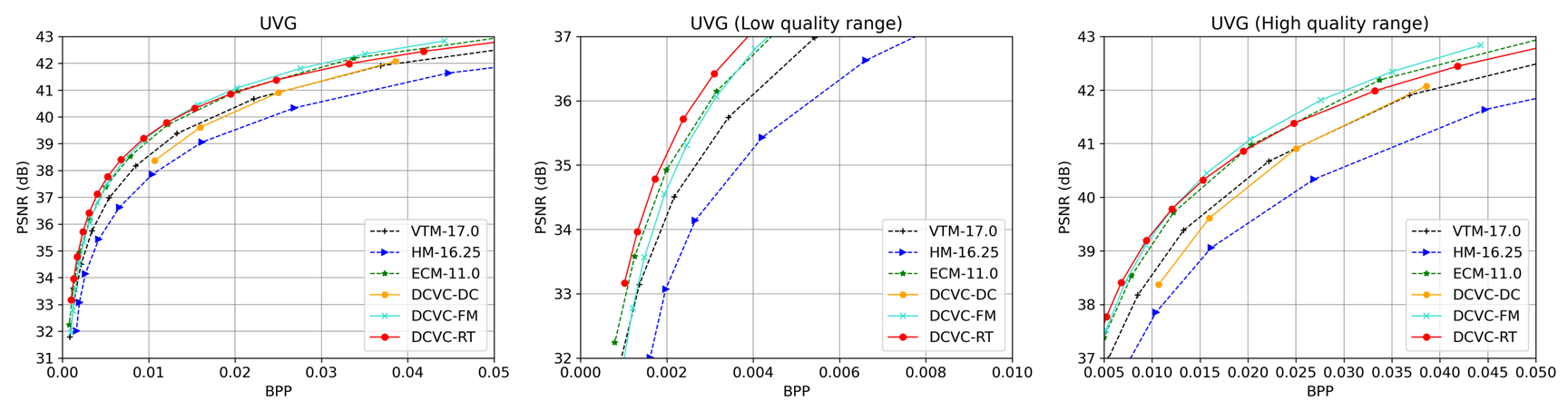 - Unified YUV and RGB coding: While DCVC-RT is primarily optimized for the widely adopted YUV format, it can seamlessly adapt to RGB content coding.