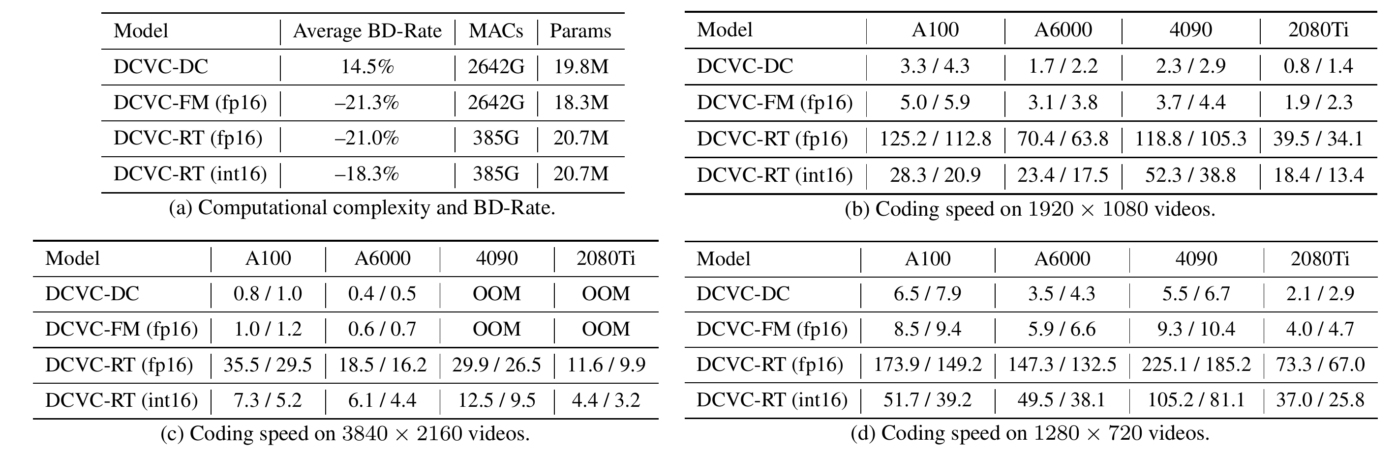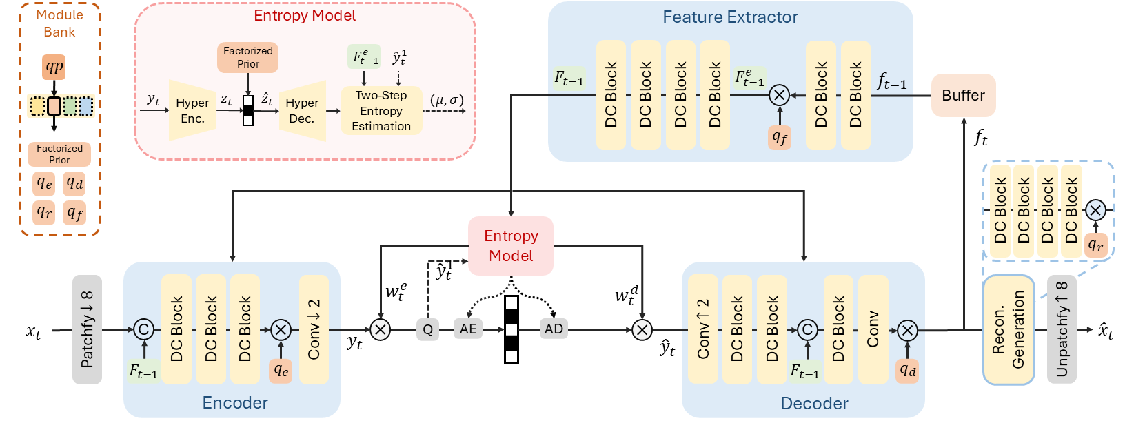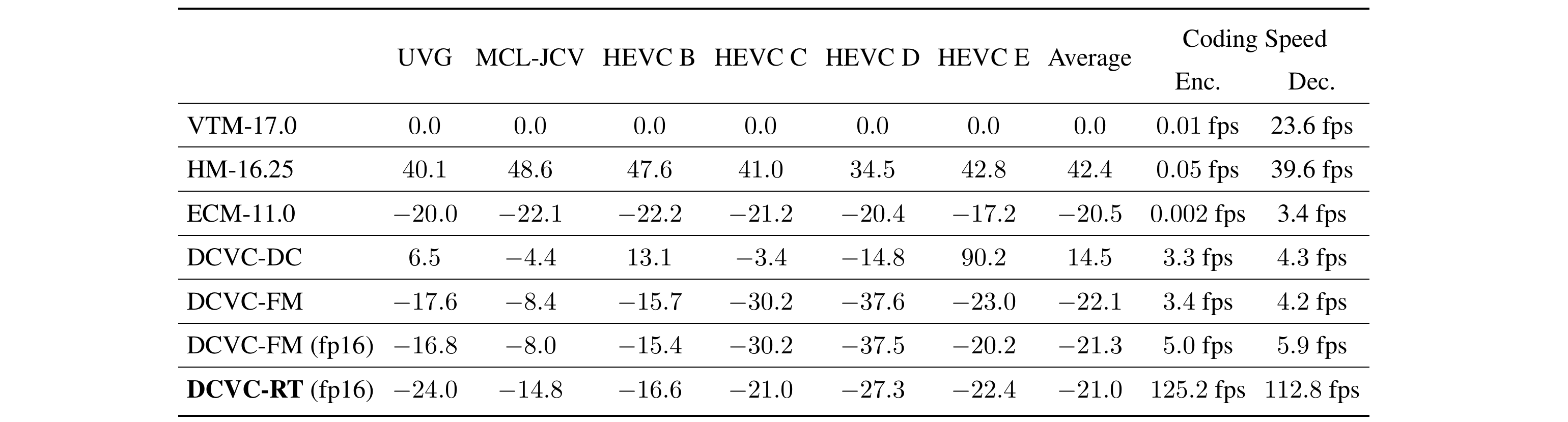 - Rate control: By adjusting quantization parameters, DCVC-RT effectively supports dynamic and various network conditions during real communication scenario.